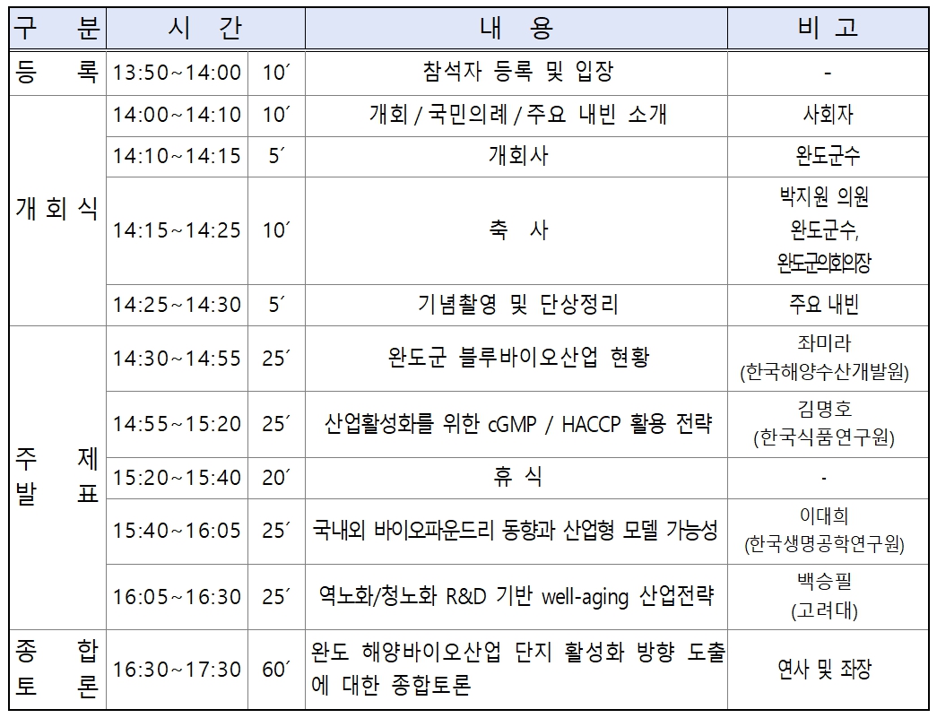 " 완도 블루바이오 산업 활성화 전략 포럼 " 등록비는 무료입니다 "